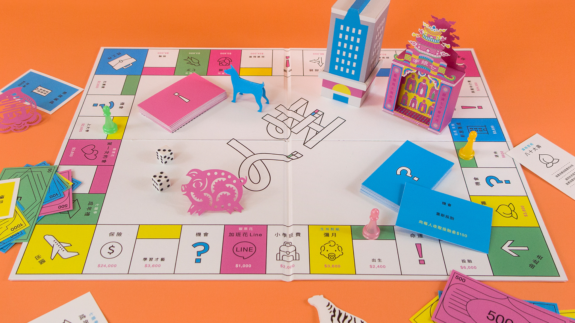 在過去,紙糊工藝是喜喪皆宜的,是與民生息息相關的宗教工藝,但因為漸失傳承,目前人們普遍對紙糊的印象,僅剩喪事用途。我們以紙糊工藝中的銀票花、七娘亭、房厝、天狗、白虎、剪紙等作為道具,以家喻互曉的大富翁為規則基礎,置入送禮、祭拜等習俗,讓玩家體驗從出生、成家、立業到老死的紙藝用途,在遊戲過程中扭轉既定印象,了解紙糊工藝服務的不只是往生一時,更是人生一世。