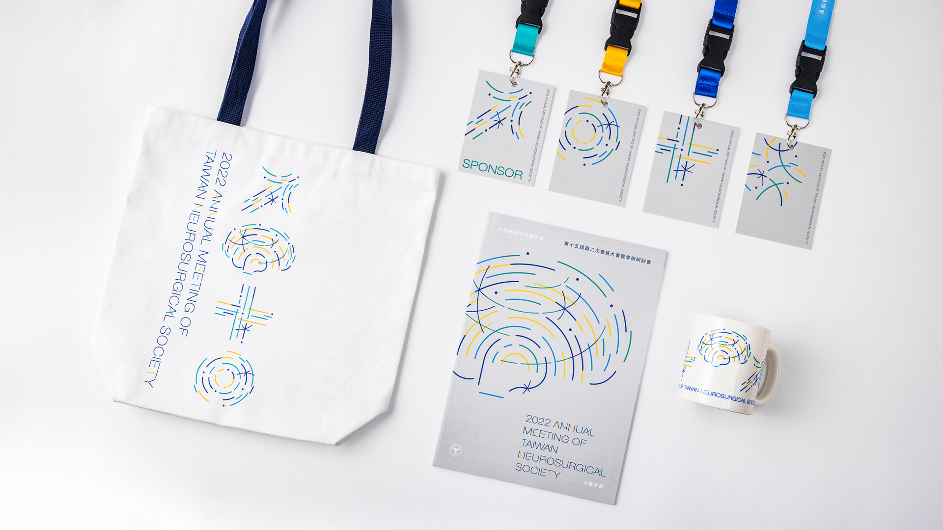 主視覺以簡潔的幾何線條構成,象徵神經元之間的訊號連結與傳導。藉由線條的方向性與節奏感,呈現醫學研究中不斷探索、交流與推進的精神。色彩以藍、黃、綠三色交織,對應理性、能量與生命力,營造出科技與人文兼具的專業印象。整體風格乾淨、理性而具動感,呼應神經外科領域的精確與創新。