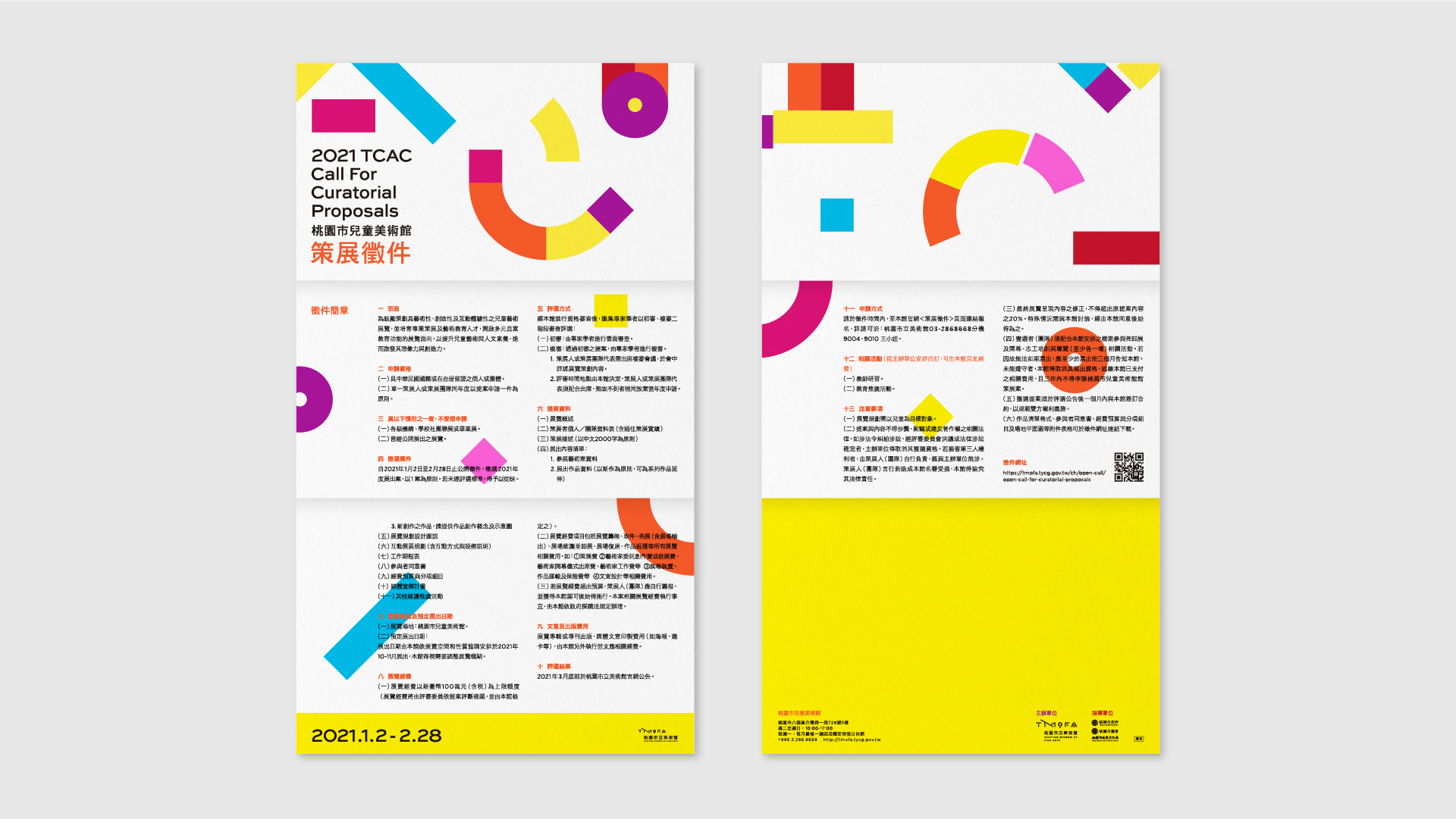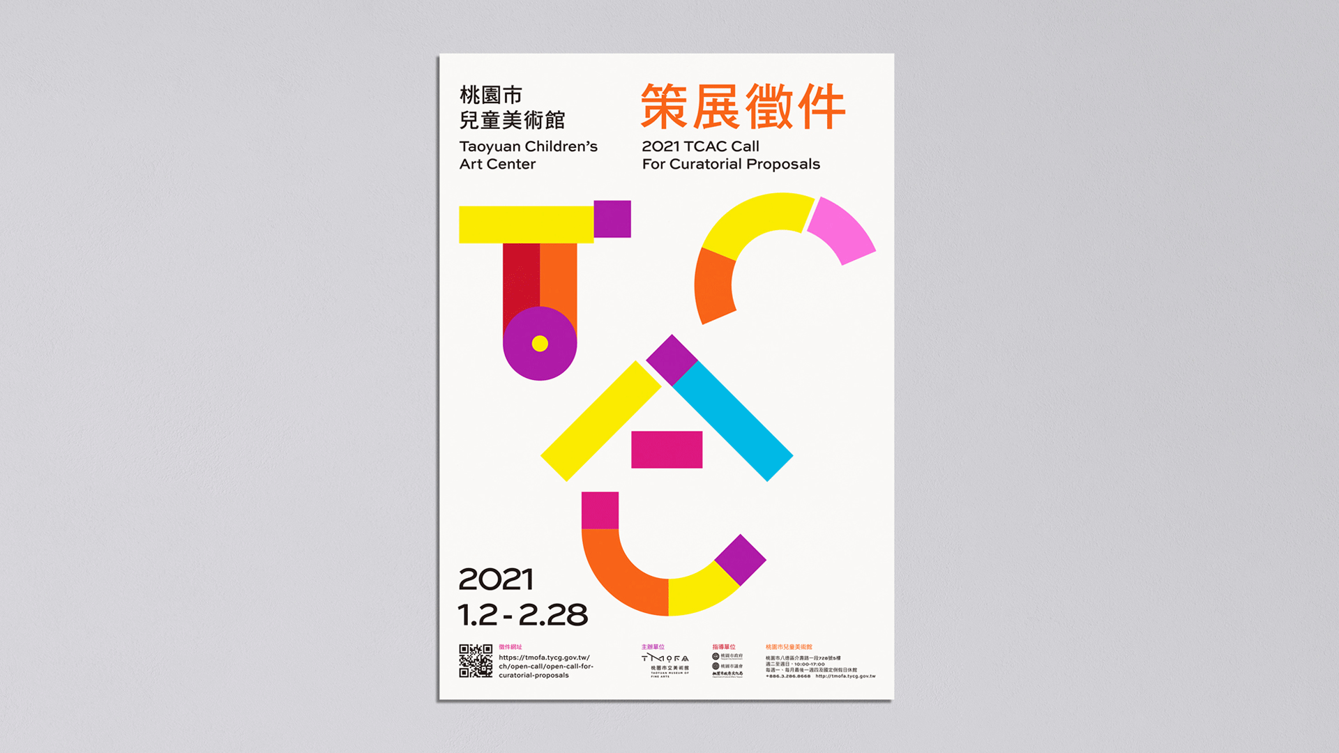主視覺以 「 積木式組構 」 為核心語言,透過幾何形狀的拆解與重組,轉化為象徵 TCAC 的視覺字母。藉由多彩、趣味且具延展性的圖形,呈現策展徵件所期待的多元視角與創造力。